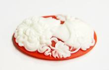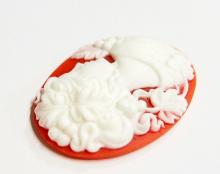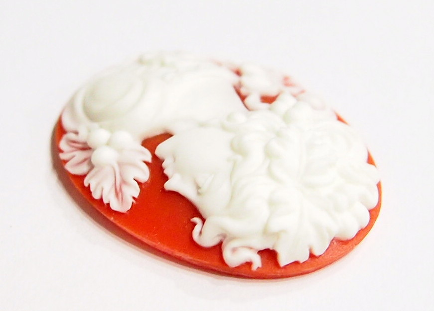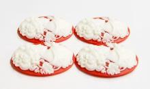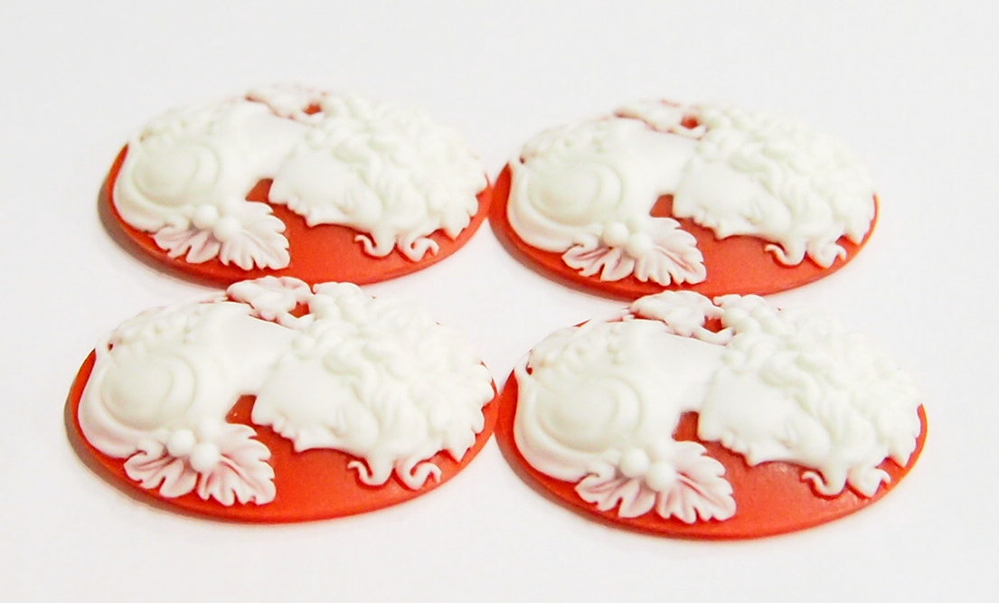 You are buying 4 of 40 mm x 30 mm White over Red Grecian/Muse Lady Cameos. They are of a Gorgeous Grecian Woman with flowers and floral accents decorating her hair, she has a shoulder gown on with a floral design, very beautiful, the molding is very well done. They are a gorgeous White on a Red Background. They measure 40 mm x 30 mm. They look very detailed for their size, in fact, they stand out from the background to give it a 3-D look. They have never been used. I have lots of Great Bails, Bracelets, Cameos, Chains, Connectors, Jump Rings, Lockets, Pendants, Pins, Rings & Settings so, just look at all my listings. I have these in 2 other Colors & in a group of 10 Colors as shown in the last picture item #111589921829, sold separately. I have this same Cameo in 25x18 mm item #360794479592 & several other Colors & in groups of different Colors.