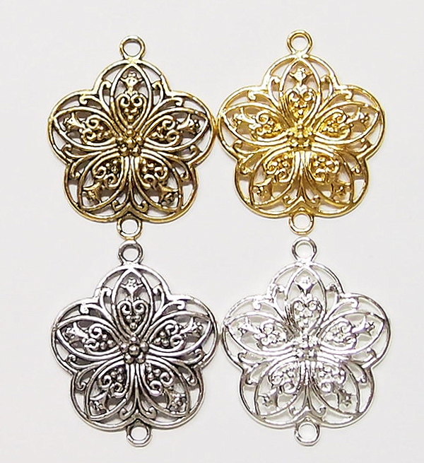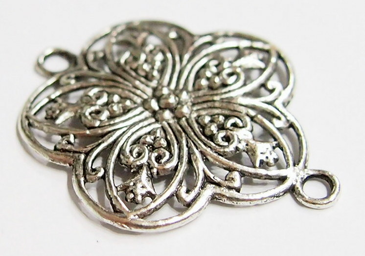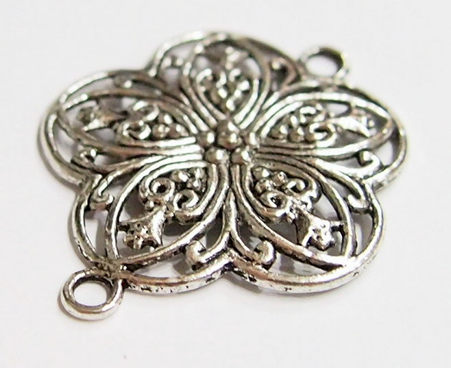 4 Antique Silver Five Sided Floral Connectors, Nice
