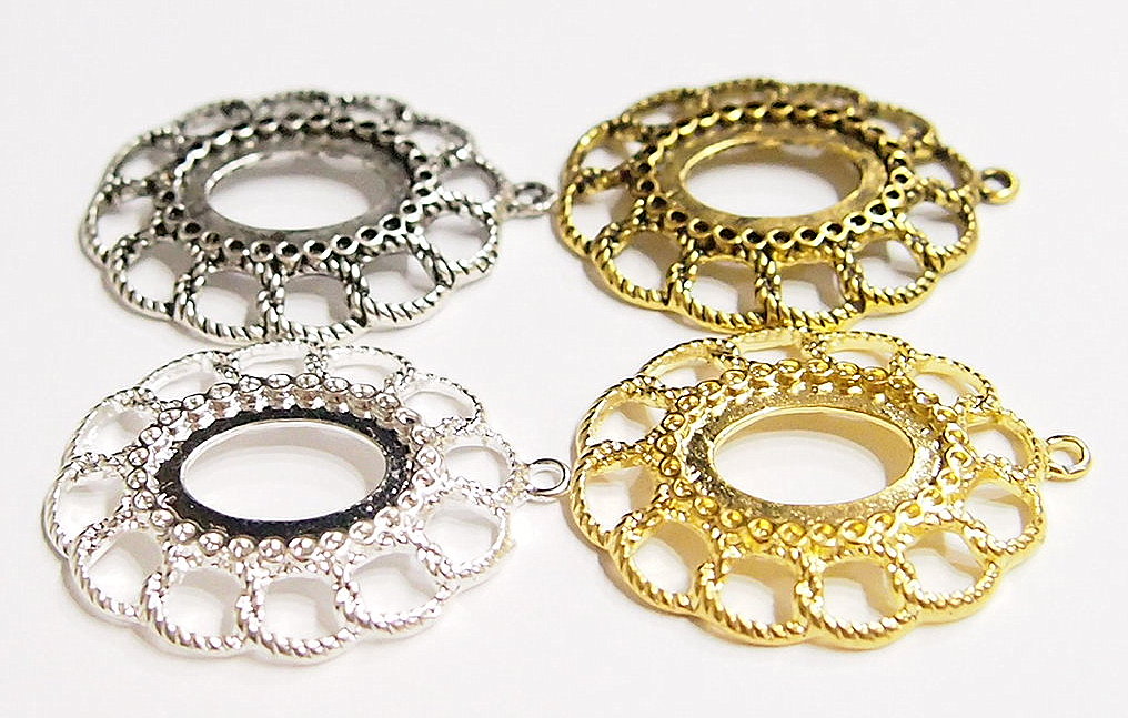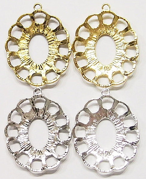 You are buying 4 different Colors of 18 mm x 13 mm Old Style Big Braided Loops Pendant Settings. You will receive one each Antique Gold, Gold, Antique Silver & Silver, these are all Plated. These are simply gorgeous, they have a braided big loop design, really looks Victorian. These measure 36 x 28 mm including the loop at the top. The top has a nice size loop (2.2 mm) for your Chain or Jump Ring (which I have 3 Colors & 2 Sizes of). These settings are originally from the 1900-1930's, I only had a few left and found a company to make these for me and they are gorgeous. The design is just delicate, but they are very solid, not flimsy like the new ones are. You will not be disappointed in the quality, it is excellent and if I was setting any cameos or cabs, I would use these. I have lots of Great Bails, Bracelets, Cameos, Chains, Connectors, Jump Rings, Lockets, Pendants, Pins, Rings & Settings so, just look at all my listings. All of these are offered in groups of 6 of each Color. The antique gold is item #110911242430, gold item #110911243356, antique silver item # 110911243396 and the silver plated is item #110911243345. I have lots of other 18x13 mm settings in several styles & Colors so give them all a look.