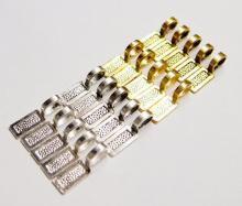 You are buying 4 different Colors of Large Rectangle Shaped Glue on Bails, these are Perfect for Jewelry Making, 5 of each Color for a total of (20 Total). You will receive 5 each Antique Gold, Gold, Antique Silver & Silver, these are all Plated. These are all Rectangle shaped. These will help you start or finish any project you have. These measure 26 mm long x 7 mm wide with a nice loop that is 8.2 mm x 5 mm that will fit most any chain or cord. You can glue just about anything with these & you can just glue these to a Cameo or Cabochon & have a quick & easy ready to wear pendant. I have lots of Great Bails, Bracelets, Cameos, Chains, Connectors, Jump Rings, Lockets, Pendants, Pins, Rings & Settings so, just look at all my listings. All of these are offered in groups of 20 of each Color. The Antique Gold is item #360471679679, Shiny Gold is item #110911242455, Antique Silver is item #360471679666, and the Shiny Silver is item #360471676542, sold separately. These are also offered in a group of 21 Different Glue Bails in 6 Styles & 4 Colors as shown in the last picture item #110911244722, sold separately.