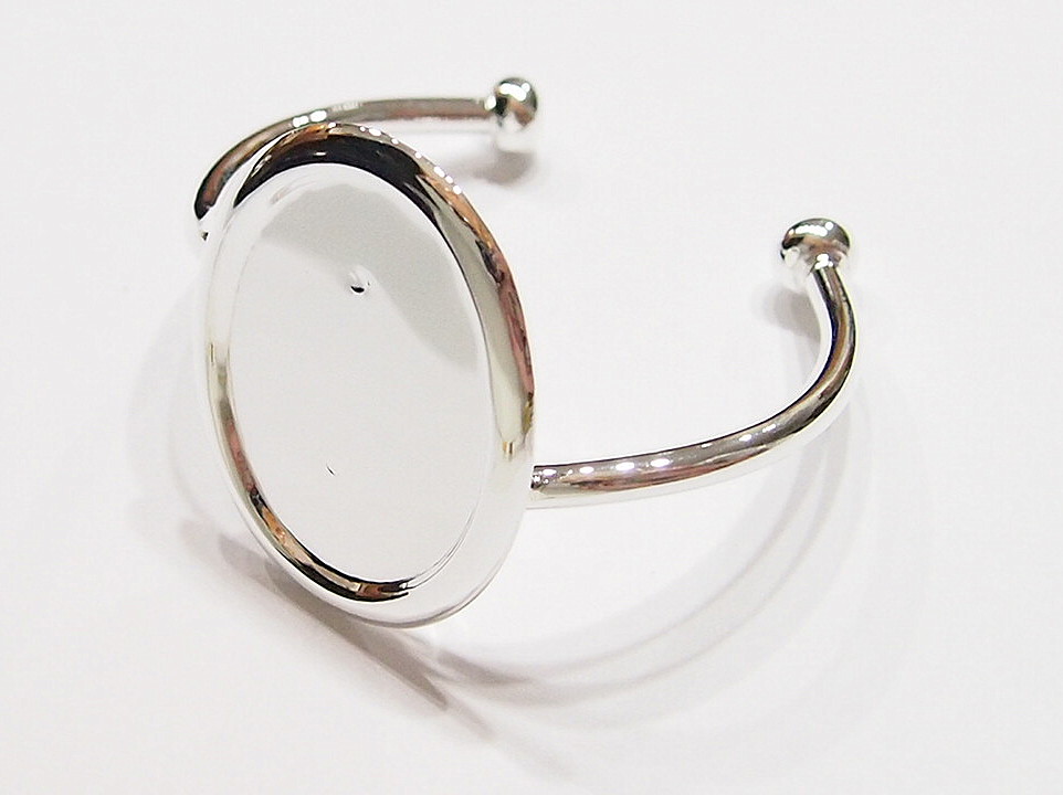 You are buying a 40 mm x 30 mm Shiny Silver Plated S-Bar Sturdy Bracelet Setting, you can use this for Cameos, Cabochons or Glass. This is a vintage reproduction and is brand new. This is a cuff bracelet Shiny Silver in color. These are very sturdy (I mean very sturdy) and cameos, cabochons, glass or whatever you want will have to be glued in. I love the way this one is done, with a sturdy bar going one way and the other way on the other side of the setting, looks like an S-Bar. This would make anything look classy. Since they are a solid back, you could go down in size a little if you had an odd size cameo or cabochon to try & fit. I have lots of Great Bailjs&h Bracelets, Cameos, Chains, Connectors, Jump Rings, Lockets, Pendants, Pins, Rings & Settings so, just look at all my listings. I have these in 3 other Colors & in a group of 4 Colors as shown in the last picture item #111340234330, sold separately. I have lots of other styles & Colors of Cuff Bracelets so give them all a look.