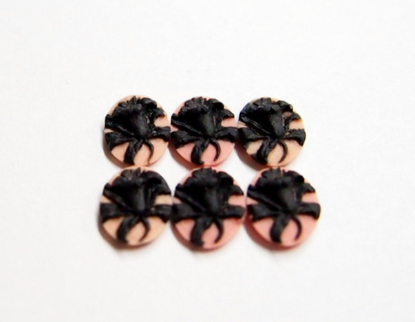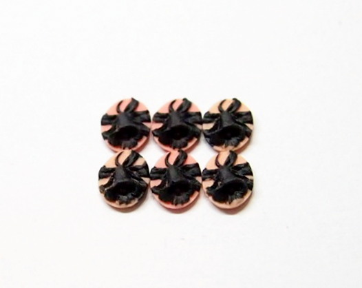 You are buying 6 of 10 mm x 8 mm Black over Peach Single Lily Cameos. These are so gorgeous, this shows a beautiful Lily. The Lily is Black on a Peach background. This is a very nice color combination. The molding process of these are just great, no flaws. I have several different settings these will fit in. They look very detailed for their size. I have lots of Great Bails, Bracelets, Cameos, Chains, Connectors, Jump Rings, Lockets, Pendants, Pins, Rings & Settings so, just look at all my listings. I have several other Colors & styles of flower Cameos in 10x8, 14x10, 18x13, 25x18, 30x22, & 40x30 mm.