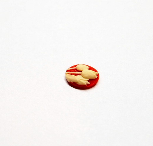 You are buying 6 of 10 mm x 8 mm Cream over Carnelian Perfect Three (3) Tulips Cameos. These are so gorgeous, this shows three beautiful Tulips. The tulips are Cream on a Carnelian background. This is a very nice color combination. The molding process of these are just great, no flaws. I have lots of Great Bails, Bracelets, Cameos, Chains, Connectors, Jump Rings, Lockets, Pendants, Pins, Rings & Settings so, just look at all my listings. I have these in 1 other Colors & in a group of 6 Colors as shown in the last picture item #110911253395.