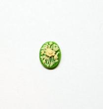 You are buying 6 of 10 mm x 8 mm Cream over Green Field of Wild Roses Cameos. These are so gorgeous, this shows a cluster of Wild Roses. The flowers are a Cream on a Green background. This is a very nice color combination. The molding process of these are just great, no flaws. I have several different settings these will fit in. They look very detailed for their size. I have lots of Great Bails, Bracelets, Cameos, Chains, Connectors, Jump Rings, Lockets, Pendants, Pins, Rings & Settings so, just look at all my listings. I have these in 1 other Color & in a group of 6 Colors as shown in the last picture item #110911253395.