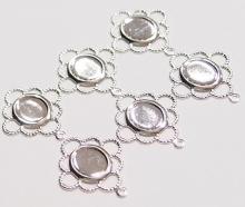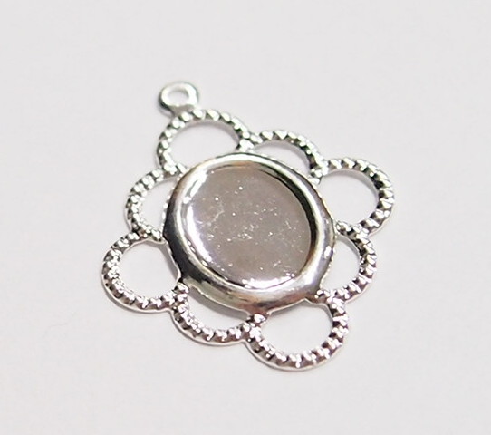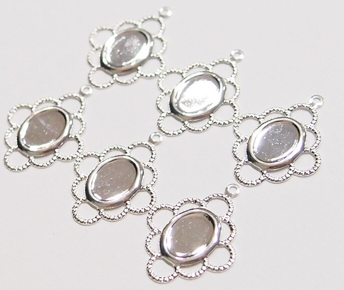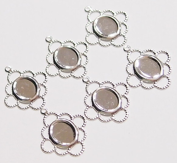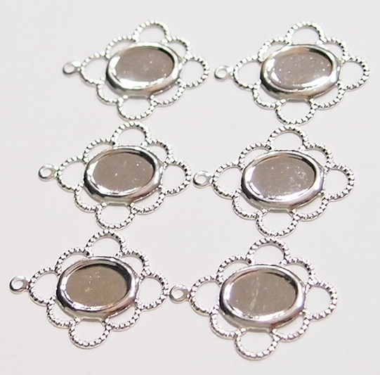 You are buying 6 of 10 mm x 8 mm Shiny Silver Plated Scallop Shaped Pendant/Earring or Charm Settings, these are Glue in settings, no prongs. These are scalloped in shape or design. You can put a jump ring to make it a small pendant or to make earrings or Charms out of them. The overall dimension are 21 x 17 mm including the loop at the top. The top has a loop (1.2 mm) for your Chain or Jump Ring (which I have 3 Colors & 2 Sizes of). The back is the same as the front. These are exactly made for 10 mm x 8 mm, with these having a solid back you could put something smaller in the setting. I have lots of Great Bails, Bracelets, Cameos, Chains, Connectors, Jump Rings, Lockets, Pendants, Pins, Rings & Settings so, just look at all my listings. I also have a similar setting like these as shown in the last picture item #110911244736, sold separately and they are also offered in Gold Plated item #110911244685.