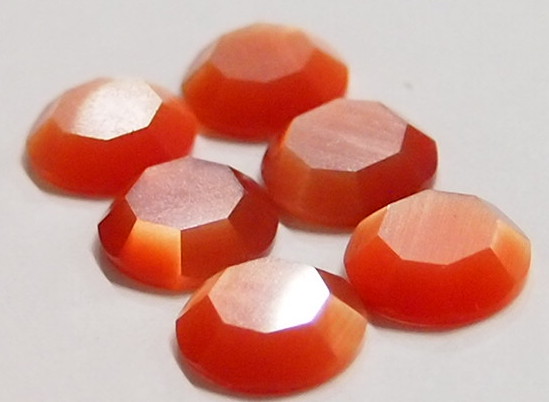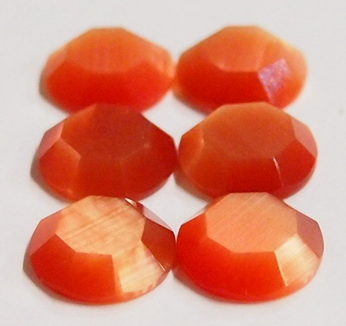 You are buying 6 Vintage unmounted 11 mm Czech Republic cabochons. These are faceted, Crystals and are in a gorgeous Rich Orange color. They are made of glass and are vintage, but never used, look brand new. I have had these quite a while and it is time to sell them, limited quantities and I have LOTS of different colors and sizes too. These have a very nice rich color to them. I have lots of Great Bails, Bracelets, Cameos, Chains, Connectors, Pendants, Pins, Rings & Settings so, just look at all my listings.