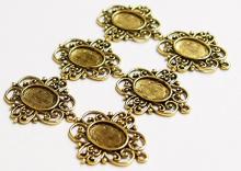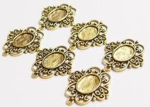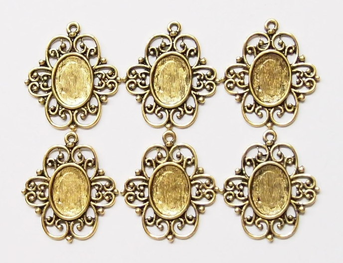 You are buying 6 of 14 mm x 10 mm Antique Gold Plated Flower Design Pendant Settings. These are gorgeous settings & the pattern is a flowery design and is going to accent any cameos or cabs you put in it. You will have to glue in any cameos or cabs you want to put into the setting, no prongs and they are very sturdy. The top has a nice size loop(1.9 mm) for your Chain or Cord or Jump Ring (which I have 3 Colors & 2 Sizes of). These have never been used. They have a gorgeous Victorian look to them. I have lots of Great Bails, Bracelets, Cameos, Chains, Connectors, Jump Rings, Lockets, Pendants, Pins, Rings & Settings so, just look at all my listings. I have these in 3 other Colors & in a group of 4 Colors as shown in the last picture item #110911242492, sold separately. I have lots of other settings this size and in groups of all 4 Colors.