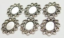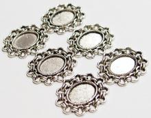 You are buying 6 of 14 mm x 10 mm Antique Silver Plated Cable Lock pattern Pendant Settings. You will have to glue in any cameos or cabs you want to put into the settings, no prongs and they are very sturdy. The top has a nice size loop(2 mm) for your Chain or Cord or Jump Ring (which I have 3 Colors & 2 Sizes of) or the sides so you can use these either Horizontal or Vertical. These are really a quality pendant setting to be used. The setting actually measures 13.8 mm x 10 mm. Since these are a little under size I just file down whatever I am setting in these just a bit & they work just fine. These have never been used. Everything is solidly made. I have lots of Great Bails, Bracelets, Cameos, Chains, Connectors, Jump Rings, Lockets, Pendants, Pins, Rings & Settings so, just look at all my listings. I also have these in Shiny Silver.