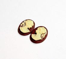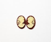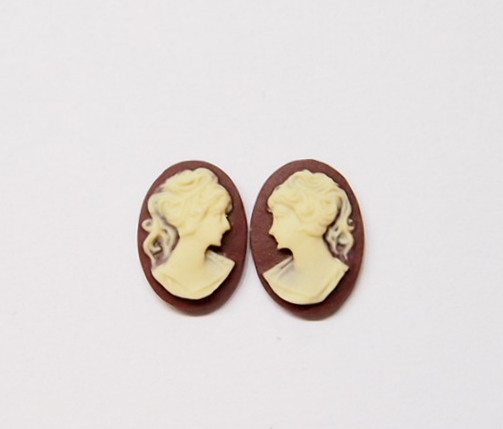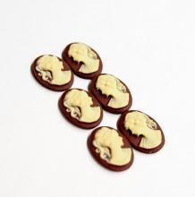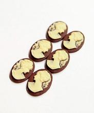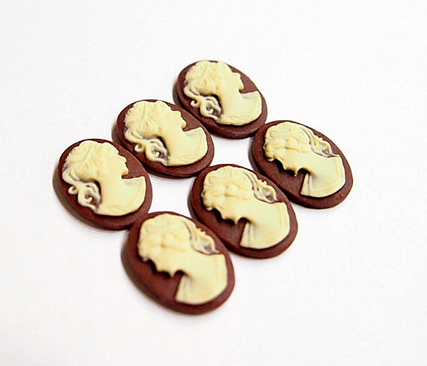 You are buying 6 of 14 mm x 10 mm Cream over Brown Ponytail Woman Cameos. They are of Beautiful woman with a small wisp of hair hanging down in the back, she is the classic woman cameo, so often seen. There is a right and left facing direction so you will receive 3 left and 3 right. These are cream color over a Brown background. They measure 14 mm x 10 mm. These would look great in earrings, bracelets, pins and rings. I have lots of Great Bails, Bracelets, Cameos, Chains, Connectors, Jump Rings, Lockets, Pendants, Pins, Rings & Settings so, just look at all my listings. I have these in 2 other Colors & in a group of 3 Colors as shown in the last picture item #110930807370. I have this style of Cameo in lots of other sizes & Colors.
