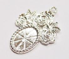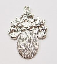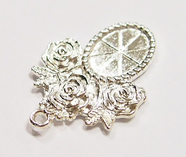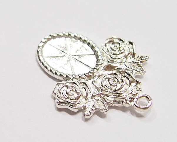 You are buying 6 of 14 mm x 10 mm Shiny Silver Plated Rose Pendant Settings. The outside dimensions are 32x24 mm including the loop at the top. The top has a nice size loop (2.3 mm) for your Chain or Cord or Jump Ring (which I have 3 Colors & 2 Sizes of). These are just a gorgeous design with 3 beautiful roses at the top, really a special setting for cameos, cabs, or charms settings. You will have to glue in any cameos or cabs you want to put into the setting, no prongs and they are very sturdy. These have never been used. I have lots of Great Bails, Bracelets, Cameos, Chains, Connectors, Jump Rings, Lockets, Pendants, Pins, Rings & Settings so, just look at all my listings. I have these in 3 other Colors & in a group of 4 Colors as shown in the next to last picture item #111014904801. I also offer a group of 29 different 14x10 settings in 4 Colors item #110911244707 as show in the last picture.