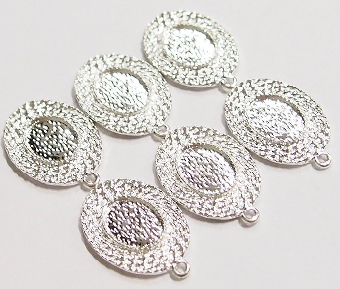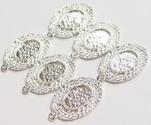 You are buying 6 of 14 mm x 10 mm Oval Shiny Silver Plated Rope Pattern Pendant Settings. The top has a nice size loop (2.2 mm) for your Chain or Cord or Jump Ring (which I have 3 Colors & 2 Sizes of). The pattern is a twisted rope with several layers for the outside design. Really a quality pendant to be used. These will hold 14 mm x 10 mm cabs or cameos, & the outside measures 30 mm x 20 mm including the loop at the top. These have never been used. You will have to glue in any cameos or cabs you want to put into the settings, no prongs and they are very sturdy. These are exactly made for 14 mm x 10 mm, but with this being a solid backing, you can go down a little on the size is you have an odd size cameo or cab to try and fit. Everything is solidly made. I have lots of Great Bails, Bracelets, Cameos, Chains, Connectors, Jump Rings, Lockets, Pendants, Pins, Rings & Settings so, just look at all my listings. I have these in 1 other Color & in a group of 2 Colors as shown in the last picture item #361460258751.