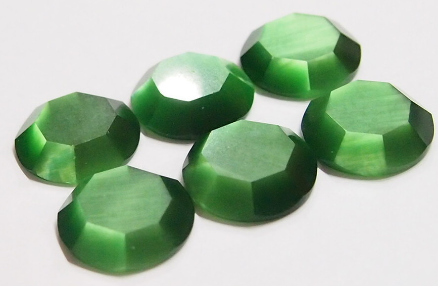 You are buying 6 Vintage unmounted 18 mm Czech Republic cabochons. These are faceted, Crystals and are in a gorgeous Dark Green color. They are made of glass and are vintage, but never used, look brand new. I have had these quite a while and it is time to sell them, limited quantities and I have LOTS of different colors and sizes too. I have several settings these will fit in. They look very detailed for their size. I have lots of great cameos, settings, connectors and pendants so, just look at all my listings.
