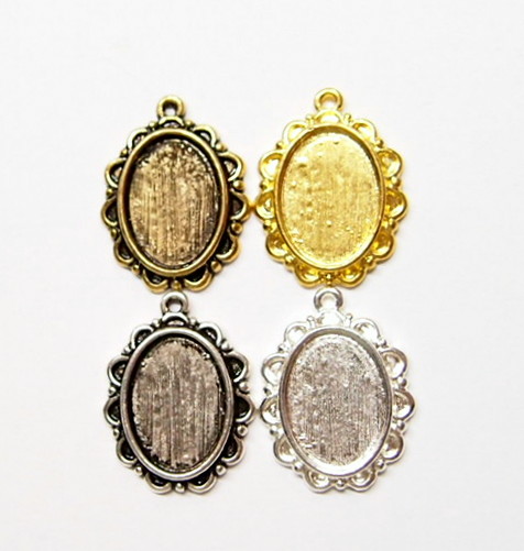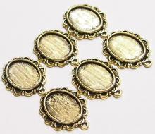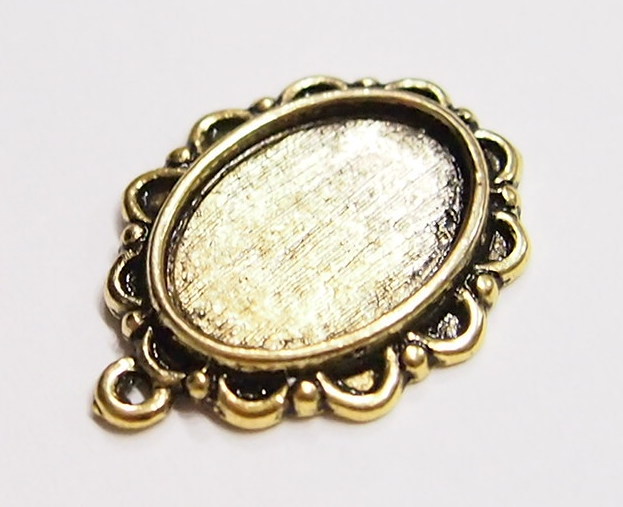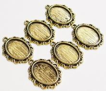 You are buying 6 of 18 mm x 13 mm Antique Gold Plated Closed Loop Oval Pendant Settings. The top has a nice size loop(1.6 mm) for your Chain or Jump Ring (which I have 3 Colors & 2 Sizes of). These are really a quality pendant setting to be used. These will hold 18 mm x 13 mm cabs or cameos, the outside measures 27x20 mm including the loop. You will have to glue in any cameos or cabs you want to put into the setting, no prongs and they are very sturdy. These have never been used. These are exactly made for 18x13 mm. Since they are a solid back, you could go down in size a little if you had an odd size cameo or cab to try & fit. Everything is solidly made. They have a gorgeous Victorian look to them. I have lots of Great Bails, Bracelets, Cameos, Chains, Connectors, Jump Rings, Lockets, Pendants, Pins, Rings & Settings so, just look at all my listings. I have these in 3 other Colors & in a group of 4 Colors as shown in the last picture item #360471676504. I also have Bracelets, Earrings and 40x30 mm Pendant Settings & Rings with this same pattern.