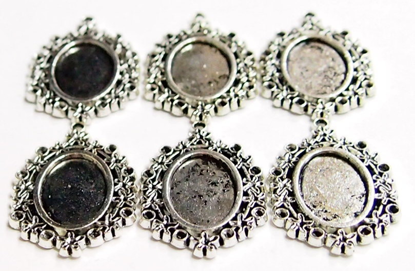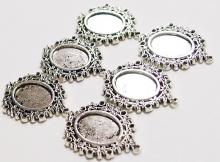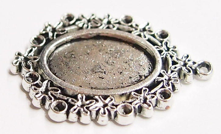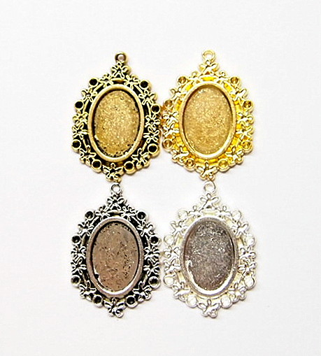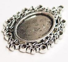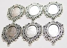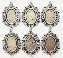 You are buying 6 of 18 mm x 13 mm Oval Antique Silver plated Pendant Settings. You will have to glue in any cameos or cabs you want to put into the setting, no prongs and they are very sturdy. The top has a nice size loop (2 mm) for your Chain or Cord or Jump Ring (which I have 3 Colors & 2 Sizes of). There are 8 places that can take very small crystals or stones or you can leave like they are, gorgeous. These are really a quality pendant setting to be used. This will hold 18 mm x 13 mm cabs or cameos, and the outside measures 35 mm x 25 mm. These have never been used. These are exactly made for 18 mm x 13 mm, but with this being a solid backing, you can go down a little on the size is you have an odd size cameo or cab to try and fit. Everything is solidly made. These were made off of old 1900's molds. They have a gorgeous Victorian look to them. These have a Cross scene on the back as shown in the pictures. I have lots of Great Bails, Bracelets, Cameos, Chains, Connectors, Jump Rings, Lockets, Pendants, Pins, Rings & Settings so, just look at all my listings. I have these in 3 other Colors & in a group of 4 Colors as shown in the last 2 pictures item #360786020992.