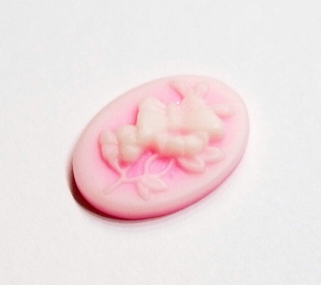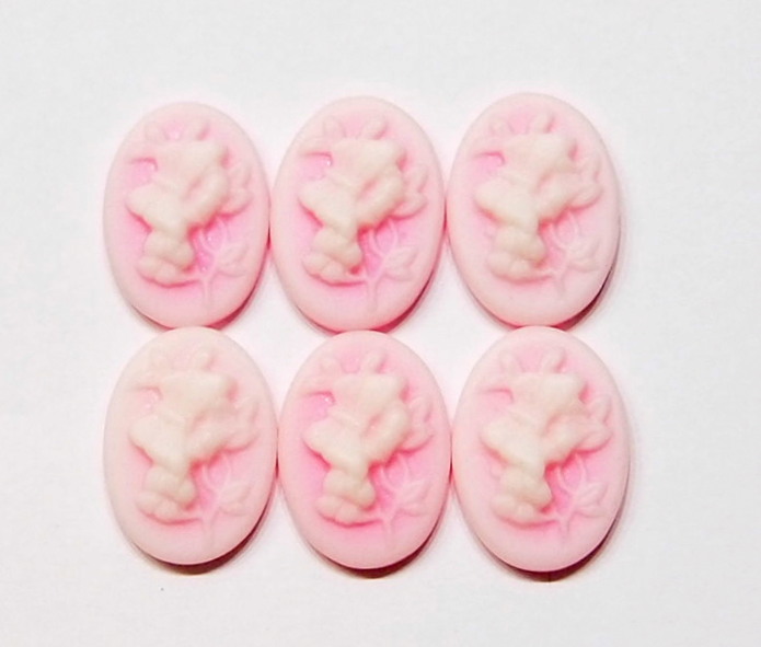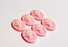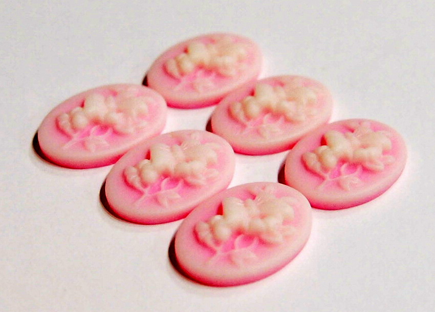You are buying 6 of 18 mm x 13 mm White fades into Pink Butterfly on Flower Cameos. They are of a Gorgeous Butterfly on Flowers. The color of these is what is so different, the Flower is white on a Pink background. They measure 18 mm x 13 mm. The butterfly stands out from the background to give it a 3-D look. The molding process of these are just great, no flaws. They look very detailed for their size. I have lots of Great Bails, Bracelets, Cameos, Chains, Connectors, Jump Rings, Lockets, Pendants, Pins, Rings & Settings so, just look at all my listings. I have these in 1 other Color and several Colors in 40x30 mm. .