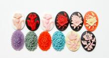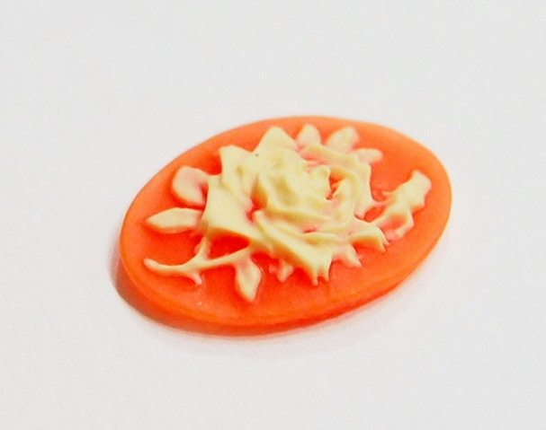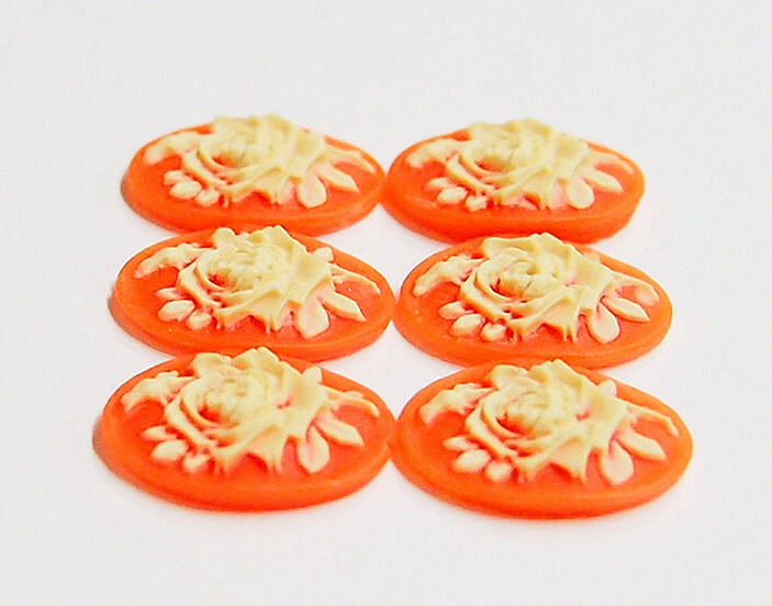 You are buying 6 of 18 mm x 13 mm Cream over Carnelian Single Rose & Bud Motif Cameos. These are so gorgeous, this shows a beautiful Rose with Bud and Leaves. The rose is Cream on a Carnelian background. This is a very nice color combination. The Rose practically fills up the entire cameo by itself. The molding process of these are just great, no flaws. They look very detailed for their size. I have lots of Great Bails, Bracelets, Cameos, Chains, Connectors, Jump Rings, Lockets, Pendants, Pins, Rings & Settings so, just look at all my listings. I have these in 3 other Colors & in a group of 12 Colors as shown in the last picture item #111005686356, sold separately.