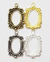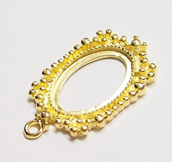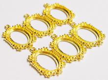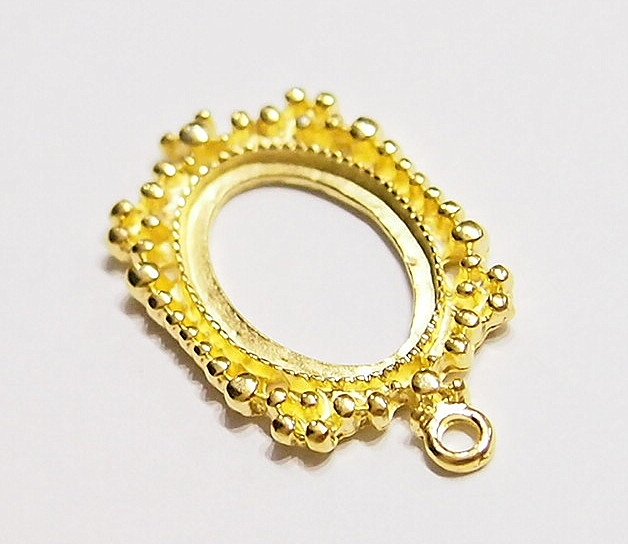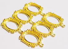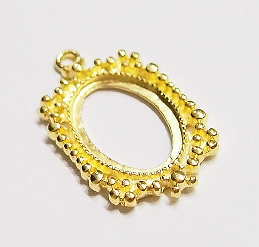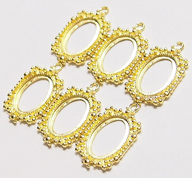 You are buying 6 of 18 mm x 13 mm Shiny Gold Plated Beaded Design Pendant Settings. These pendants have a loop at the top for your chains or cords or jump rings and the design is of Beads all around the setting which, makes these stand out. You will have to glue in any cameos or cabochons you want to put into the settings, no prongs and they are very sturdy. Really a quality pendant to be used. These will hold 18 mm x 13 mm cameos or cabs. These have never been used. These are exactly made for 18 mm x 13 mm. Everything is solidly made. They have a gorgeous Victorian look to them. I have lots of Great Bails, Bracelets, Cameos, Chains, Connectors, Jump Rings, Lockets, Pendants, Pins, Rings & Settings so, just look at all my listings. I have these in 3 other Colors & in a group of 4 Colors as shown in the last picture item #111437437696, sold separately. I have lots of other settings like these in lots of different styles and colors.