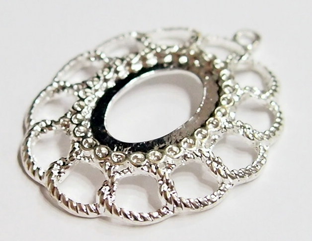 You are buying 6 of 18 mm x 13 mm Silver Plated Old Style Braided Loops Pendant Settings. These are simply gorgeous, they have a braided big loop design, really looks Victorian. These measure 36x28 mm including the loop at the top. The top has a nice size loop (2.2 mm) for your Chain or Jump Ring (which I have 3 Colors & 2 Sizes of). These settings are originally from the 1900-1930's, I only had a few left and found a company to make these for me and they are gorgeous. The design is just delicate, but they are very solid, not flimsy like the new ones are. You will not be disappointed in the quality, it is excellent and if I was setting any cameos or cabs, I would use these. I have lots of Great Bails, Bracelets, Cameos, Chains, Connectors, Jump Rings, Lockets, Pendants, Pins, Rings & Settings so, just look at all my listings. I have these in 3 other Colors & in a group of 4 Colors as shown in the last picture item #110911244712. I have lots of other 18x13 settings in several colors & styles.