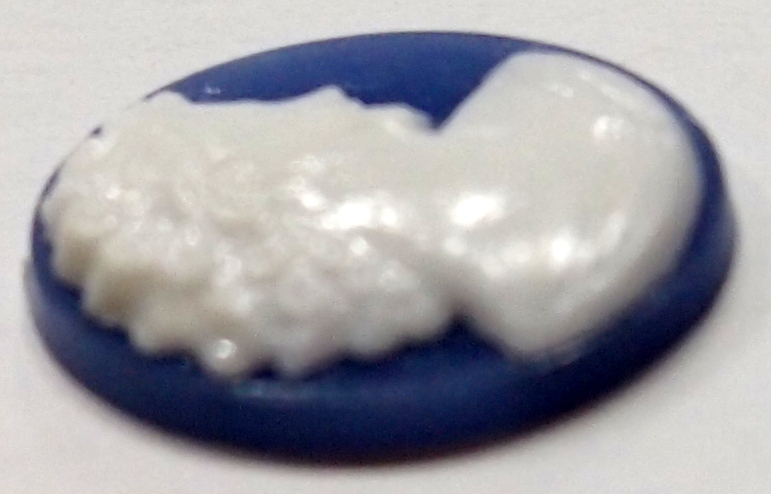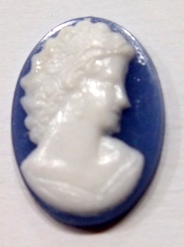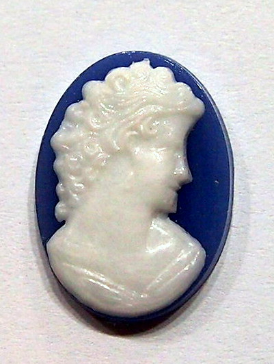 You are buying 6 Victorian Ladies Cameos. These are really old and before they tried the resin ones, they did a few years of these kind of cameos back in the late 30 and 1940's. These are of a beautiful Victorian woman facing Right. These are old stock, but never used. These would be great in any of the 18 mm x 13 mm settings that I have listed. They are a white color that fades into a Dark Blue background. They look very detailed for their size.Unusual White over Dark Blue