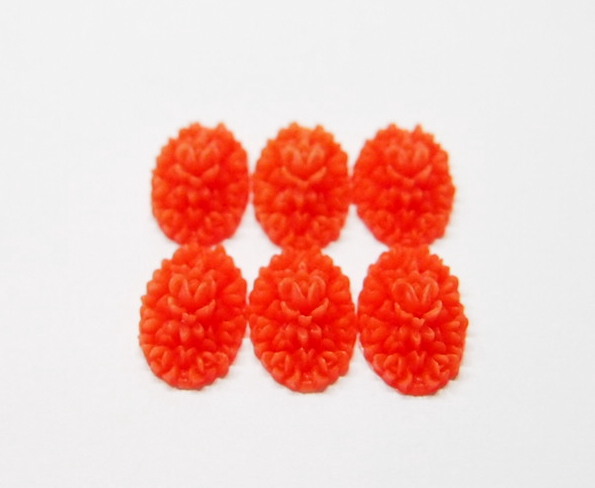 You are buying 6 of 18 mm x 13 mm Red Layers of Roses Cameos. These are really nice, they show a layer of rose that ends up in the middle as a large rose, made of acrylic, very 3-D looking. The molding process of these are just great, no flaws. I have several different settings these will fit in. You can use these Horizontal or Vertical. They look very detailed for their size. I have lots of Great Bails, Bracelets, Cameos, Chains, Connectors, Jump Rings, Lockets, Pendants, Pins, Rings & Settings so, just look at all my listings. I have these in 3 other color and they are offered in a group of 12 different 18x13 mm flower cameos as shown in the last picture item #111005686356, sold separately. I also have these in several Colors of 25x18 and 40x30 mm and in groups.