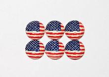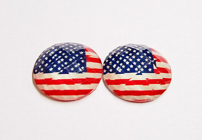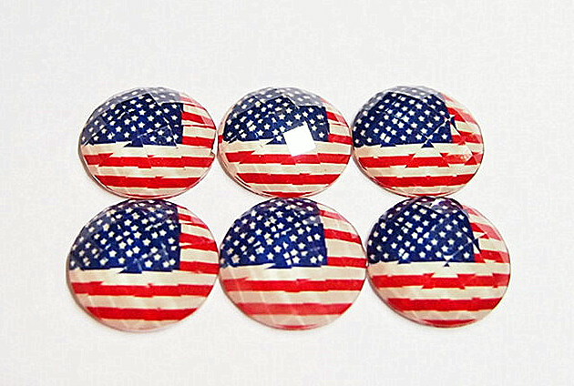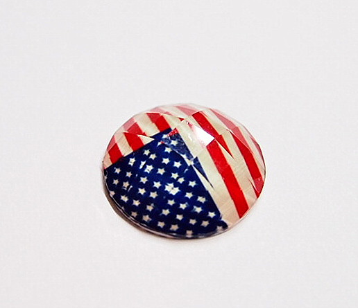 You are buying 6 of 20 mm Round Acrylic Faceted USA Flag Cameos. They fit just perfect into the 20 mm pendants i have listed. These are really nice, they show an American Flag with the Red, White and Blue colors and the Star and Stripes design with a faceted face. The molding process of these are just great, no flaws. I have several different settings these will fit in. They look very detailed for their size. I have lots of Great Bails, Bracelets, Cameos, Chains, Connectors, Jump Rings, Lockets, Pendants, Pins, Rings & Settings so, just look at all my listings. They really look awesome & very patriotic. I have 4 Colors of 20 mm Round Settings these look very nice in like item #360885334768.