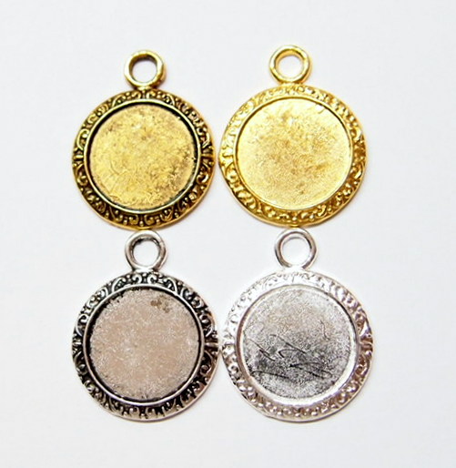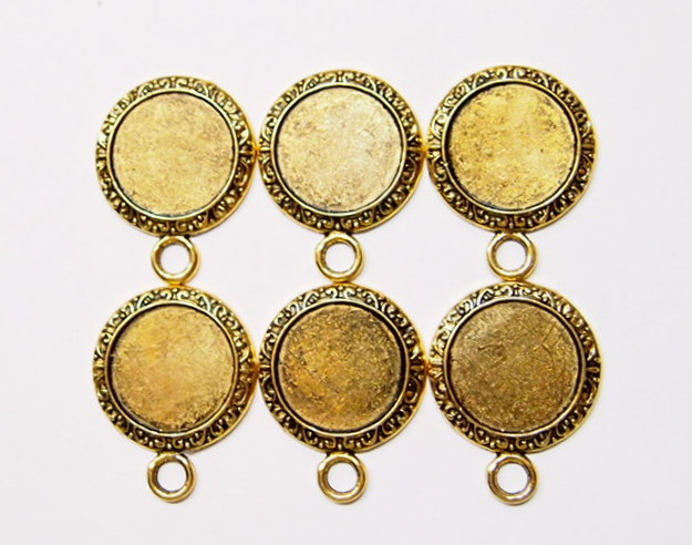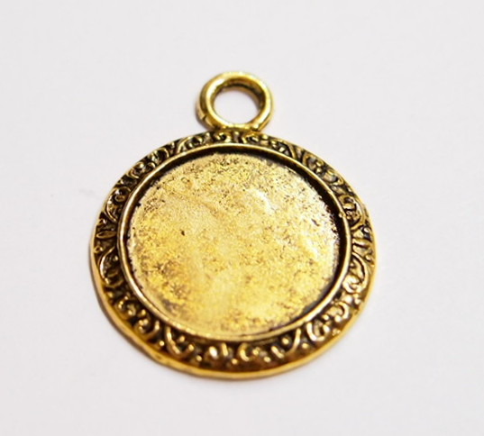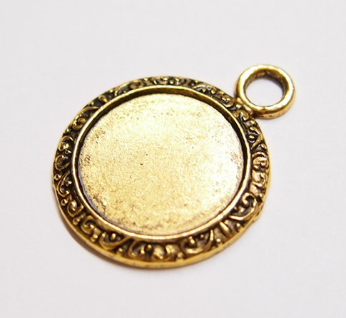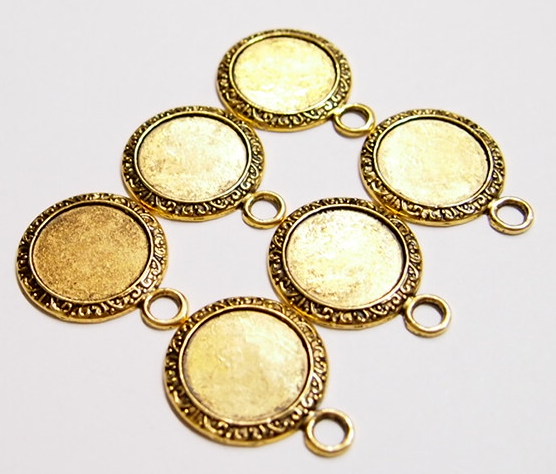 You are buying 6 of 20 mm Round Antique Gold Plated Scroll Edge Pendant Settings. These pendants have a Scroll edge pattern around the setting, & are very nice looking. The setting measures 20 mm & the outside measures 26 mm in diameter, since they have a solid backing, so you could put something smaller for those hard to fit cameos/cabs or Coins. You will not be disappointed in the quality, it is excellent and if I was setting any cameos/cabs or coins, I would use these. The backside has a small lip and you could put up to 24 mm cameos/cab or coins in & you could have a double sided pendant. Cabs or Cameos or Coins will have to be glued in, no prongs. I have lots of Great Bails, Bracelets, Cameos, Chains, Connectors, Jump Rings, Lockets, Pendants, Pins, Rings & Settings so, just look at all my listings. I have these in 3 other Colors & in a group of 4 Colors as shown in the last picture item #111638286209.
