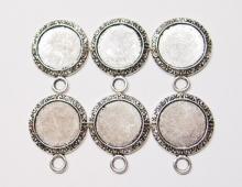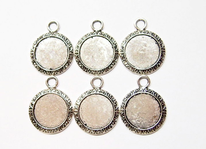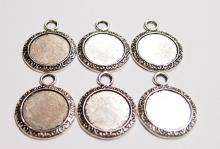 You are buying 6 of 20 mm Round Antique Silver Plated Scroll Edge Pendant Settings. These pendants have a Scroll edge pattern around the setting, & are very nice looking. The setting measures 20 mm & the outside measures 26 mm in diameter, since they have a solid backing, so you could put something smaller for those hard to fit cameos/cabs or Coins. You will not be disappointed in the quality, it is excellent and if I was setting any cameos/cabs or coins, I would use these. The backside has a small lip and you could put up to 24 mm cameos/cab or coins in & you could have a double sided pendant. Cabs or Cameos or Coins will have to be glued in, no prongs. I have lots of Great Bails, Bracelets, Cameos, Chains, Connectors, Jump Rings, Lockets, Pendants, Pins, Rings & Settings so, just look at all my listings. I have these in 3 other Colors & in a group of 4 Colors as shown in the last picture item #111638286209.