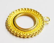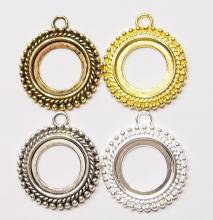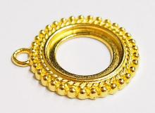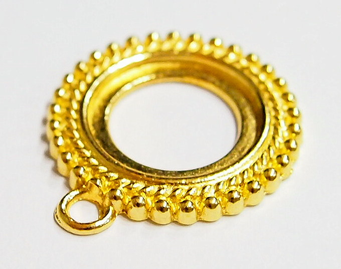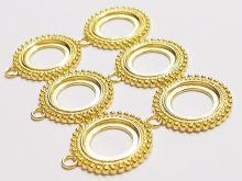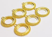 You are buying 6 of 20 mm Round Gold Plated Beaded & Rope Pattern Pendant Settings. These pendants have a Gorgeous Beaded outer pattern & a Rope inner design. You will not be disappointed in the quality, it is excellent and if I was setting any cameos or cabs, I would use these. The setting measures 20 mm & the outer diameter is 30 mm. The top has a nice size loop (3.7 mm) for your Chain or Cord or Jump Ring (which I have 3 Colors & 2 Sizes of). Cabs or Cameos will have to be glued in, no prongs. I have lots of Great Bails, Bracelets, Cameos, Chains, Connectors, Jump Rings, Lockets, Pendants, Pins, Rings & Settings so, just look at all my listings. I have these in 3 other Colors & in a group of 4 Colors as shown in the last picture item #110963581065.