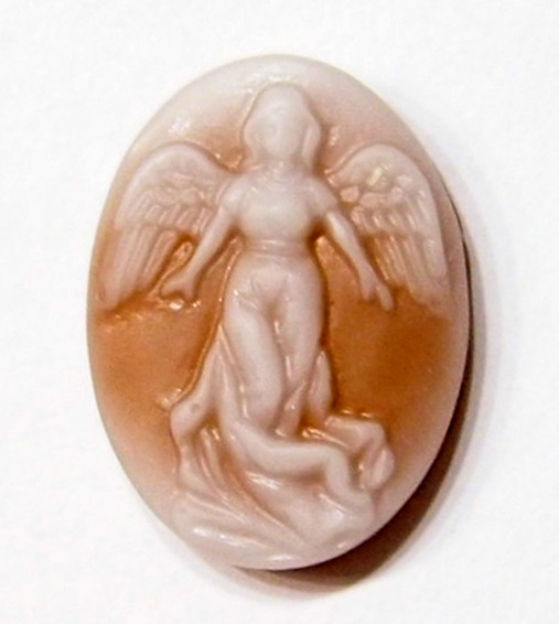 You are buying 6 of 21 mm x 16 mm White over Brown Full Body Woman Flying Angel Cameos. They are of a beautiful Lady Angel White color with a flowing gown & Angel Wings in full spread on a Brown background. They look very detailed for their size. I have lots of Great Bails, Bracelets, Cameos, Chains, Connectors, Jump Rings, Lockets, Pendants, Pins, Rings & Settings so, just look at all my listings. These will fit fine in about any 25x18 mm setting you just have to center them. I have these in 1 other color & in a group of 3 Colors as shown in the last picture item #360478422157.