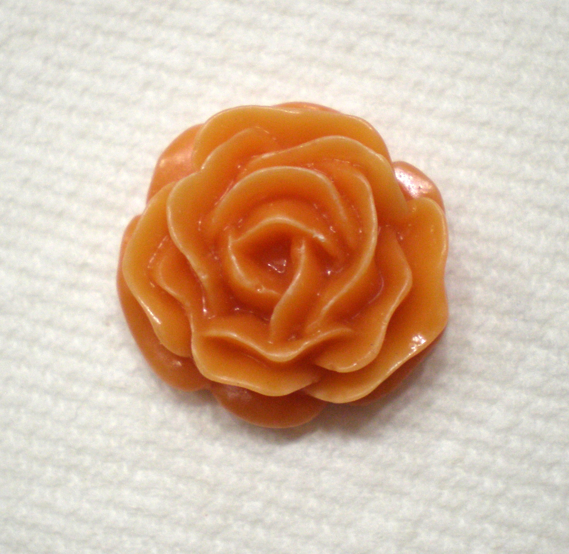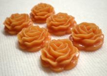 You are buying 6 Vintage 22 mm Japan Acrylic Cameos. Older cameos were sometimes just a little off in sizing because most of the settings were handmade to fit them. They fit just perfect in a 22 or 23 mm settings. Even though they are not even all the away around, 22 mm is perfect for these to sit in. These are really nice, they show a gorgeous rose, made of acrylic. Japan, around the 1920's produced a lot of flowered cameos and other types. They were unusual, but not that popular then, so Japan was forced out of the cameo business by West Germany and Czech. The color is a pale orange. I even have some 22 mm that these will fit or you can always go up in size. The molding process of these are just great, no flaws. I have several different settings these will fit in. They look very detailed for their size. I have lots of great cameos, settings, connectors and pendants so, just look at all my listings.