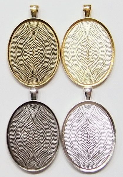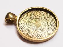 You are buying 6 of 25 mm Round Antique Gold Plated Deep Band Pendant Settings, for Cameos, Cabs, or Coins. These pendants have a deep band (2 mm) and a nice size bail (4 x 6 mm) to hold whatever you put in the pendant, cameos, cabs or coins. These will hold 25 mm perfect, if you want to go smaller, you can because it has a solid backing, there is nothing flimsy about these settings, they are very sturdy and solid. Cabs or Cameos or coins will have to be glued in, no prongs. I have lots of Great Bails, Bracelets, Cameos, Chains, Connectors, Jump Rings, Lockets, Pendants, Pins, Rings & Settings so, just look at all my listings. I have these in 3 other Colors & in a group of 4 Colors as shown in the next to last picture item #360944247964. I have this same design in 4 Colors of 40x30 mm pendant settings item #110911242389 as shown in the last picture and both are sold separately.