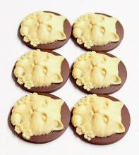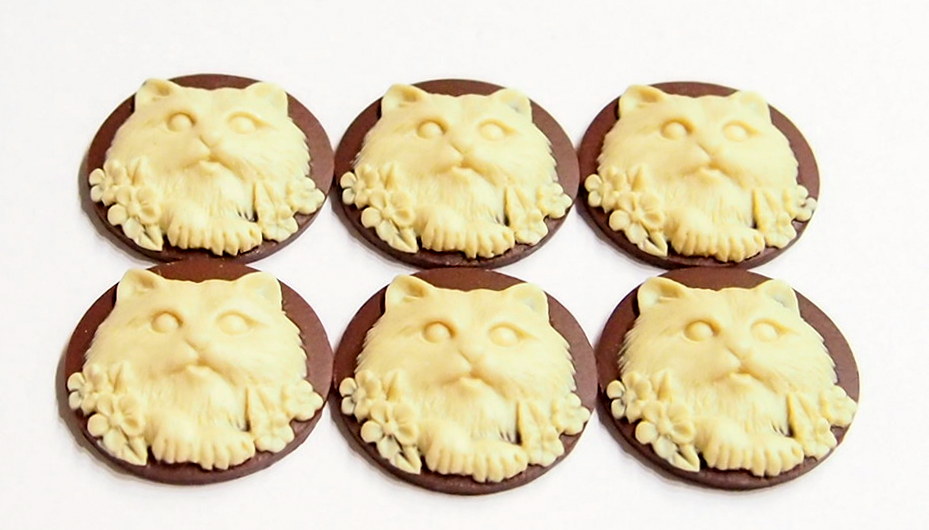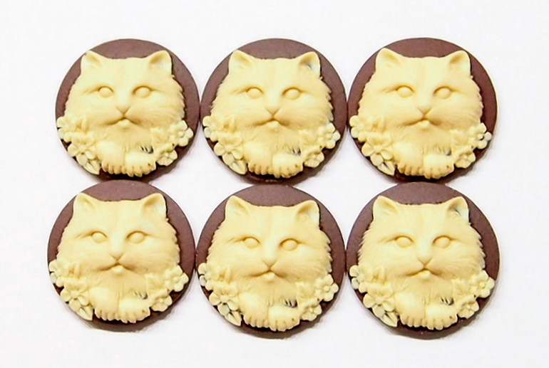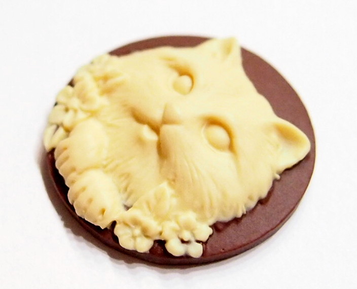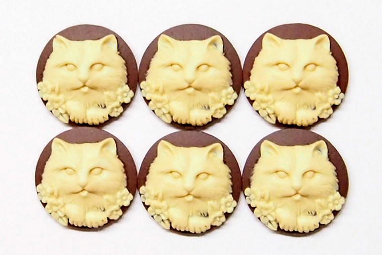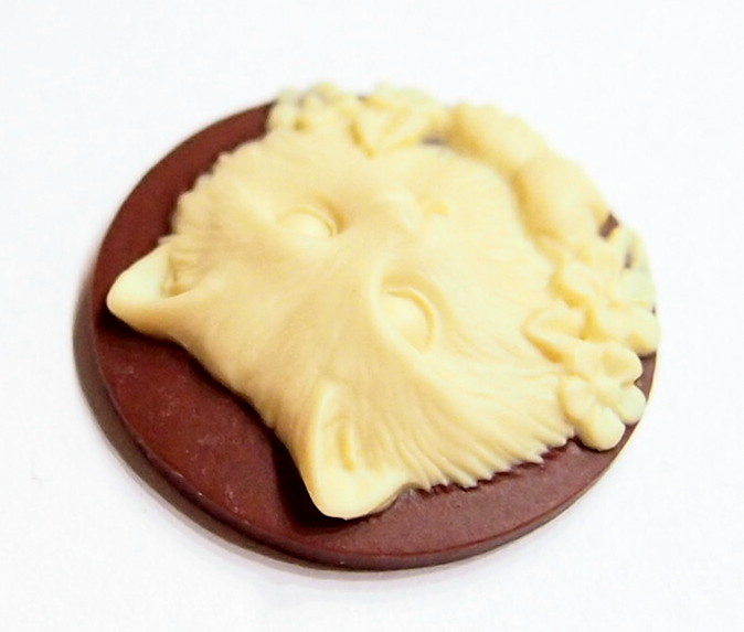 You are buying 6 of 25 mm Cream over Brown Round Cute Cat Cameos. These cats are just gorgeous with its little paws in front and the tongue just out of its mouth, these are very cute. These are all Cream with a floral pattern around on a brown background. They look very detailed for their size, in fact, they stand out from the background to give it a 3-D look. These measures 25 mm round and fit into the 25 mm pendants, (which I have listed in 4 Colors), just perfect. I have cats in 29 mm also. I have lots of Great Bails, Bracelets, Cameos, Chains, Connectors, Jump Rings, Lockets, Pendants, Pins, Rings & Settings so, just look at all my listings. I have these in 1 other Color, Brown over White and in a group of 6 Round Cute Cat Cameos as shown in the last picture item #360471675604, sold separately.