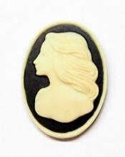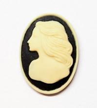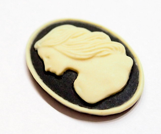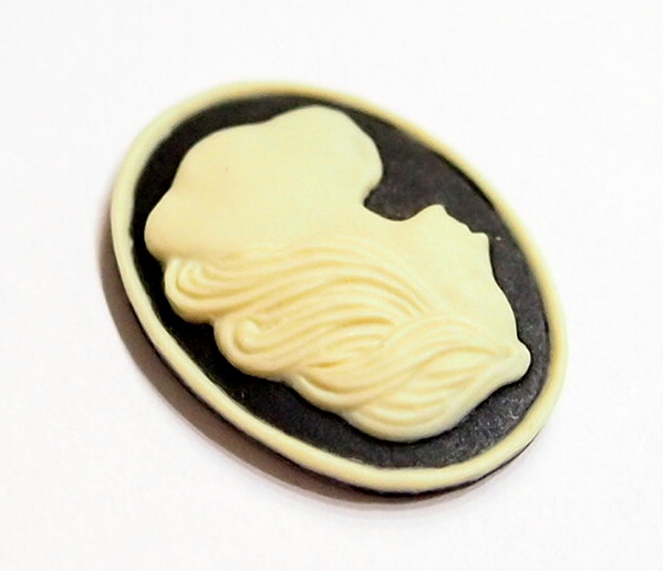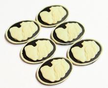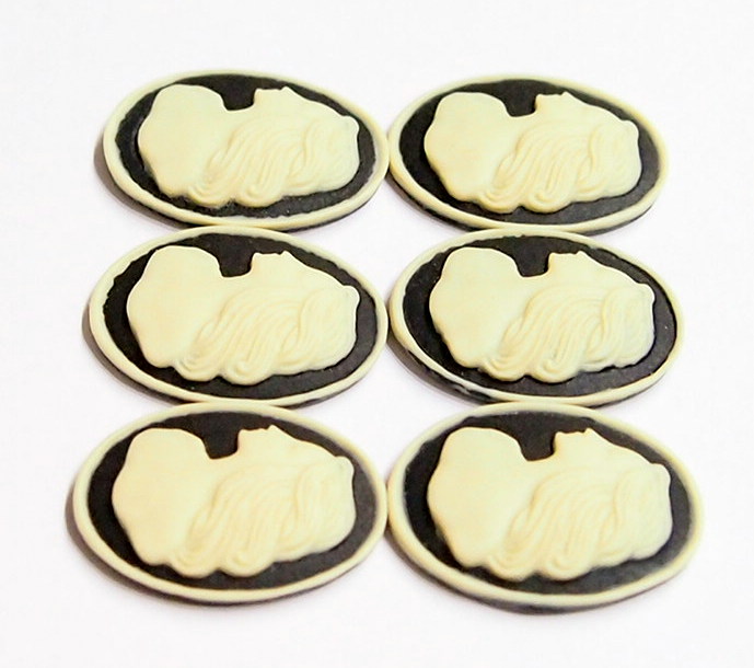 You are buying 6 of 25 mm x 18 Cream over Black Left Facing Bare Shoulder Woman Cameos. They are of a beautiful Cream color lady facing left in a fabulous pose, the background is Black and the cameo itself is outlined in a Cream color. These are one of the most gorgeous cameos I have ever seen. They measure 25 mm x 18 mm. They look very detailed for their size. I have lots of Great Bails, Bracelets, Cameos, Chains, Connectors, Jump Rings, Lockets, Pendants, Pins, Rings & Settings so, just look at all my listings. I also have these in black over white item #360471675569 as shown in the last picture, sold separately.