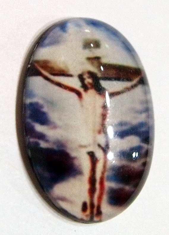 You are buying 6 of 25 mm x 18 mm Acrylic Jesus on the Cross Cameos. These have been put on an acrylic background. I have several different settings these will fit in. They fit into the 25 mm x 18 mm settings I have listed. These are pretty fabulous. They look very detailed for their size. I have lots of Great Bails, Bracelets, Cameos, Chains, Connectors, Jump Rings, Lockets, Pendants, Pins, Rings & Settings so, just look at all my listings. Sorry for the glare as these are hard to take a picture without the light reflecting off of these gorgeous cameos. I also have these in 18x13 mm and lots of other religious themed Cameos in several Colors & sizes.