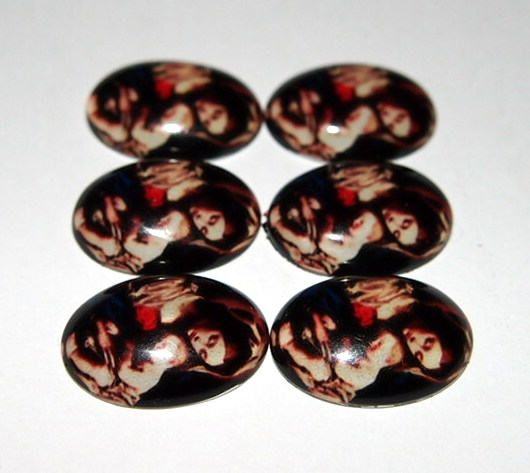 You are buying 6 of 25 mm x 18 mm Acrylic Virgin Mary and Baby Jesus Cameos. These are so gorgeous, this shows the Virgin Mary with baby Jesus wrapped in her arms, just lovely. This has been put on an acrylic background and are not as old as the other cameos I am selling, but I think it is more unique, no flaws and very colorful. I have several different settings these will fit in. They fit into the 25 mm x 18 mm settings I have listed. These are pretty fabulous. They look very detailed for their size. I have lots of Great Bails, Bracelets, Cameos, Chains, Connectors, Jump Rings, Lockets, Pendants, Pins, Rings & Settings so, just look at all my listings. I also have this in a 40x30 cameo already mounted in an Antique Silver Setting item #161149091206 as shown in the last picture, and is sold seperatly.