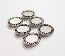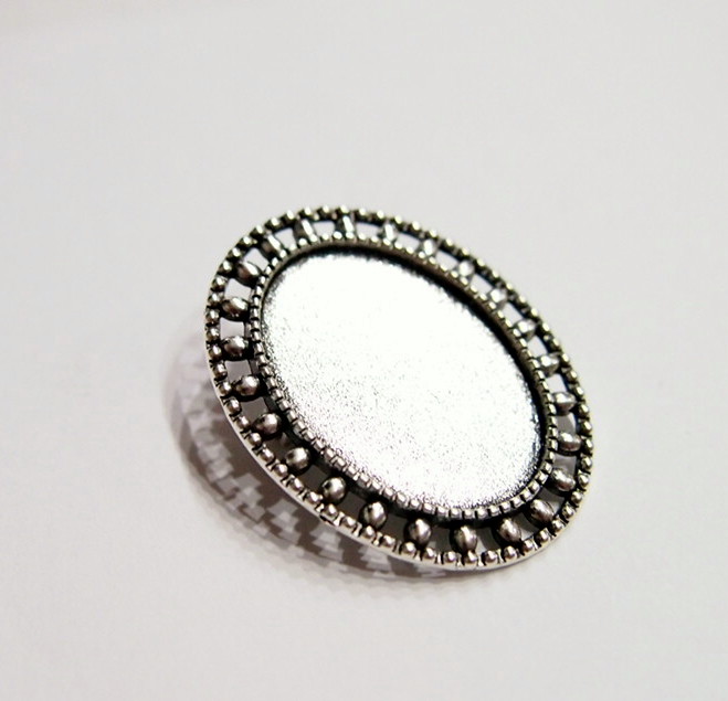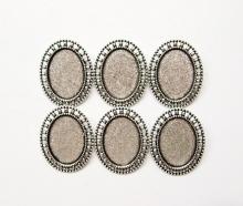 6 of 25x18 mm Antique Silver Beaded Brooch or Pin Settings, Very Nice