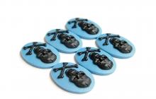 You are buying 6 of 25 mm x 18 mm Black over Blue Skull & Cross Bones Cameos. They are of a Skull and Cross Bones Pirates beware, the molding is very well done. They are a Black on a Blue Background. They measure 25 mm x 18 mm. They look very detailed for their size, in fact, they stand out from the background to give it a 3-D look. They have never been used. I have lots of Great Bails, Bracelets, Cameos, Chains, Connectors, Jump Rings, Lockets, Pendants, Pins, Rings & Settings so, just look at all my listings. I have these in several other Colors & in 40x30 mm in lots of Colors & Styles.