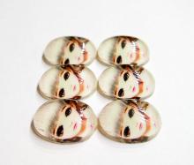 You are buying 6 of 25 mm x 18 mm Young Wide Eyed Girl Cameos. These are so gorgeous, this shows a young girl with her eyes wide open, looking just beautiful. These have been put on an acrylic background and are more unique than some of the others, no flaws and very colorful. I have several different settings these will fit in. They fit into the 25 mm x 18 mm settings I have listed. These are pretty fabulous. These look very detailed for their size. I have lots of Great Bails, Bracelets, Cameos, Chains, Connectors, Jump Rings, Lockets, Pendants, Pins, Rings & Settings so, just look at all my listings.