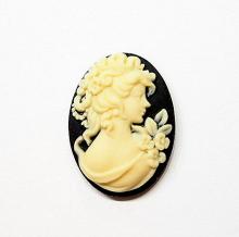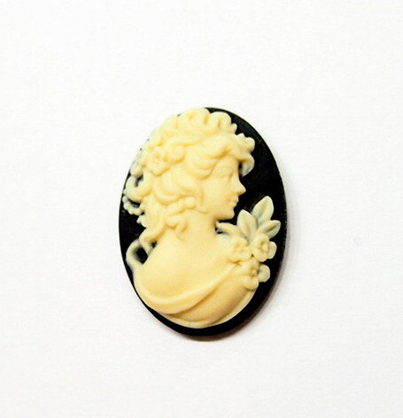 You are buying 6 of 25 mm x 18 mm Cream over Black Grecian Floral Corsage Cameos. These are so gorgeous, this shows a beautiful Classic Grecian woman in a Cream color on a background of Black. She is just stunning. These measure 25 mm x 18 mm. The molding process of these are just great, no flaws. They fit into the 25x18 mm settings that I have listed. These are pretty fabulous. They look very detailed for their size. I have lots of Great Bails, Bracelets, Cameos, Chains, Connectors, Jump Rings, Lockets, Pendants, Pins, Rings & Settings so, just look at all my listings. I have this same cameo in one other Color & in a group of 10 colors as shown in the last picture item #360935670102.