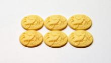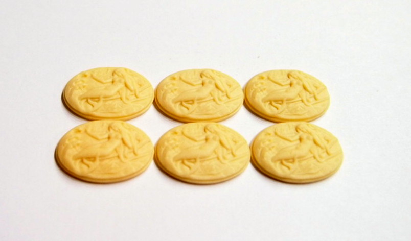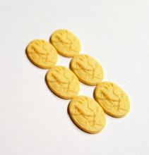 You are buying 6 of 25 mm x 18 mm Horizontal Cream Color Single Gorgeous Mermaid on the Rocks Cameos. These are so gorgeous, this shows a beautiful Single Mermaid in the Ocean, just too pretty in a all Cream color. The nice thing about having one color is you can use a little acrylic nail polish or paint to decorate the cameo anyway you want too and have a one of a kind cameo. These measure 25 mm x 18 mm. All my cameos have never been used. The molding process of these are just great, no flaws. I have several different settings these will fit in. These are pretty fabulous. They look very detailed for their size. I have lots of Great Bails, Bracelets, Cameos, Chains, Connectors, Pendants, Pins, Rings & Settings so, just look at all my listings. I have this same Cameo in 40x30 & in several Colors & in 25x18 & 40x30 mm.