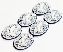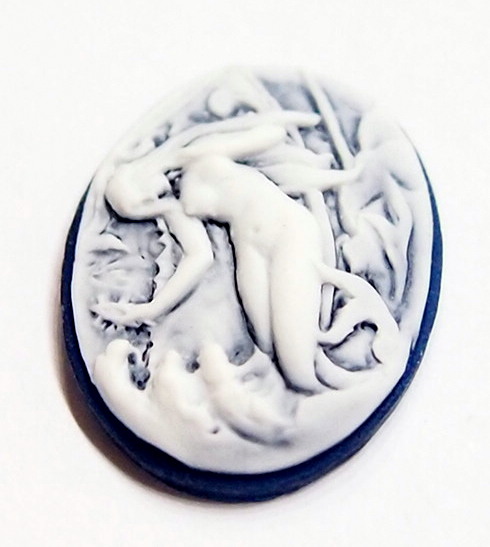 You are buying 6 of 25 mm x 18 mm Horizontal White over Dark Blue Single Mermaid Cameos. This shows a single gorgeous full length Mermaid sunning on the rocks. She is White on a Dark Blue Background. She is simply stunning. The molding process of these are just great, no flaws. These measure 25 mm x 18 mm and are horizontal in orientation. I have several different settings these will fit in. They look very detailed for their size. I have lots of Great Bails, Bracelets, Cameos, Chains, Connectors, Jump Rings, Lockets, Pendants, Pins, Rings & Settings so, just look at all my listings. I have these in 3 other Colors & in a group of 8 Colors as shown in the last picture item #360471676503, sold separately. I also have these with 5 mermaids on the rocks in 4 Colors & in 40x30 mm.