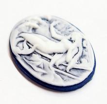 6 of 25x18 mm Horizontal White over Dark Blue Mermaid Cameos, Nice