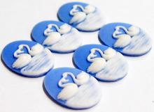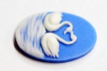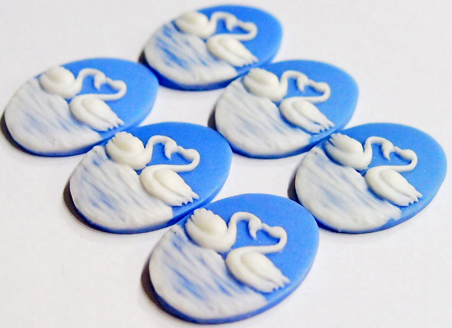 You are buying 6 of 25 mm x 18 mm White over Baby Blue 2 Facing Swans Heart Cameos. They are of Two Beautiful Swans facing each other and forming a gorgeous heart shaped, I think these are just fabulous, the meaning behind them could be used for any special occasion. The Swans stand out from the cameo to give you the 3-d effect. They are a White color to a Baby Blue color background, the contrast is very pretty between the two colors. They measure 25 mm x 18 mm. They look very detailed for their size. I have lots of Great Bails, Bracelets, Cameos, Chains, Connectors, Jump Rings, Lockets, Pendants, Pins, Rings & Settings so, just look at all my listings.