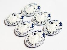You are buying 6 of 25 mm x 18 mm White over Dark Blue Angel with 3 Children Cameos. These are so gorgeous, this shows a Beautiful full body Female Angel with three playful Angels around her. These are a White color on a Wedgwood Portland Blue (dark Blue) background, even an outline of the cameo is in White. The molding process of these are just great, no flaws. These measure 25 mm x 18 mm. They look very detailed for their size. I have lots of Great Bails, Bracelets, Cameos, Chains, Connectors, Jump Rings, Lockets, Pendants, Pins, Rings & Settings so, just look at all my listings. I also have these in 40x30 mm in several Colors.