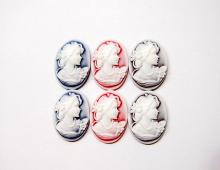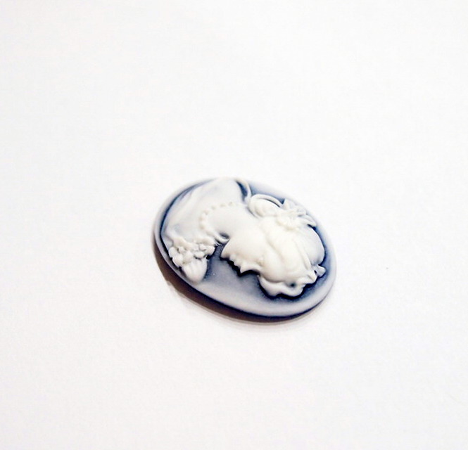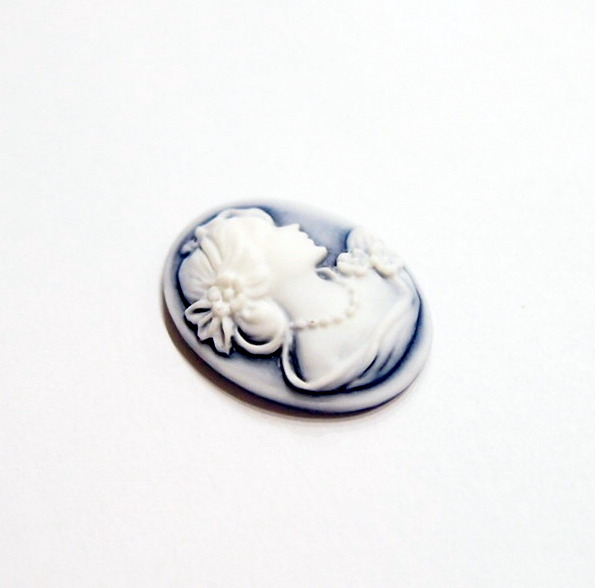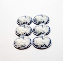 You are buying 6 of 25 mm x 18 mm White over Dark Blue Victorian Style Corsage & Pearls Cameos. These are of a beautiful Woman with her hair up and looking toward the right with a corsage. She has a pearl necklace, and wearing a low cut gown. The cameo is White over a Dark Blue color Background. These are fashioned after the older style of Cameos. They measure 25x18 mm. They look very detailed for their size. I have lots of Great Bails, Bracelets, Cameos, Chains, Connectors, Jump Rings, Lockets, Pendants, Pins, Rings & Settings so, just look at all my listings. I have these in 2 other Colors & in a group of 3 Colors for a total of 6 gorgeous 25x18 mm Cameos as shown in the next to last picture item #361510316187. I also offer a group of 10 different 25x18 mm beautiful Grecian Women Cameos as shown in the last picture item #360935670102.