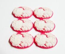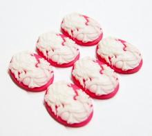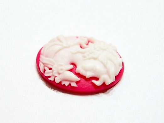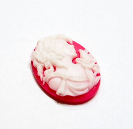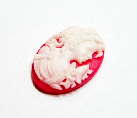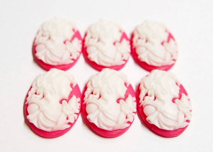 You are buying 6 of 25 mm x 18 mm White over Pink Grecian Floral & Bird Woman Cameos. These are so gorgeous, this shows a beautiful Classic Grecian woman in White over Pink Color Background. She is just stunning. The molding process of these are just great, no flaws. She has floral surrounding her with a low cut gown on and a bird in the floral design. They fit into the 25 mm x 18 mm settings I have listed. These are pretty fabulous and they look very detailed for their size. I have lots of Great Bails, Bracelets, Cameos, Chains, Connectors, Pendants, Pins, Rings & Settings so, just look at all my listings. I offer a group of 10 different 25x18 mm Cameos similar to these as shown in the last picture Item #360935670102.