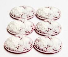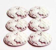 6 of 25x18 mm White over Washed out Red Floral Classic Grecian Lady Cameos, Nice