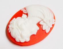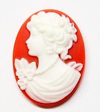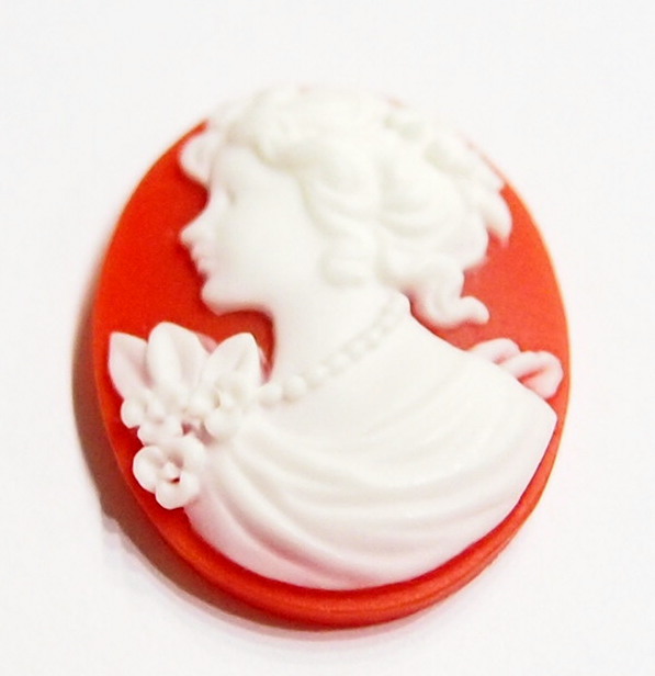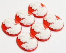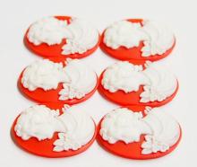 You are buying 6 of 28 mm x 20 mm White over Red Left Facing Victorian Floral Lady Cameos. These are so gorgeous, this shows a beautiful Victorian Woman with floral designs surrounding her wearing pearls on her neck, facing Left. She is white on a Red Background. The Woman practically fills up the entire cameo by itself. The molding process of these are just great, no flaws. I have several different settings these will fit in. They measure 28 mm x 21 mm and will fit just fine in any of the 30 mm x 22 mm setting. They look very detailed for their size. I have lots of Great Bails, Bracelets, Cameos, Chains, Connectors, Jump Rings, Lockets, Pendants, Pins, Rings & Settings so, just look at all my listings.