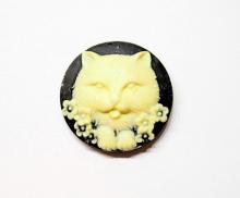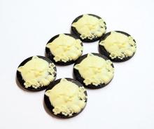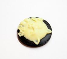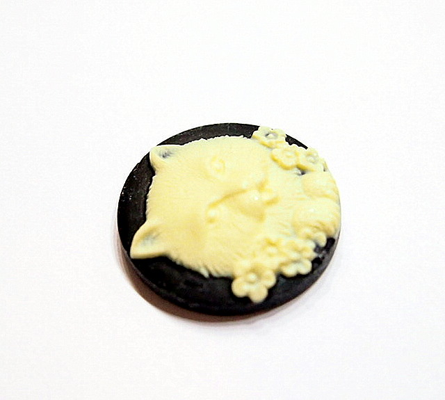 You are buying 6 of 28.5 mm Round Cream over Black Cat with tongue out Cameos. This cat is just gorgeous with its little paws in front and tongue just out of its mouth, these are precious. These are Cream Color with flowers on a black background. They measure 28.5 mm round and fit into the 30 mm settings I have just perfectly. They look very detailed for their size. I have lots of Great Bails, Bracelets, Cameos, Chains, Connectors, Jump Rings, Lockets, Pendants, Pins, Rings & Settings so, just look at all my listings. I have these in 2 other Colors & in a group of 6 Colors as shown in the last picture item #360471675604.