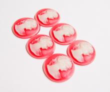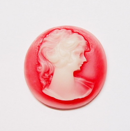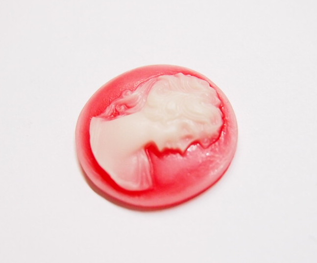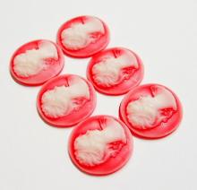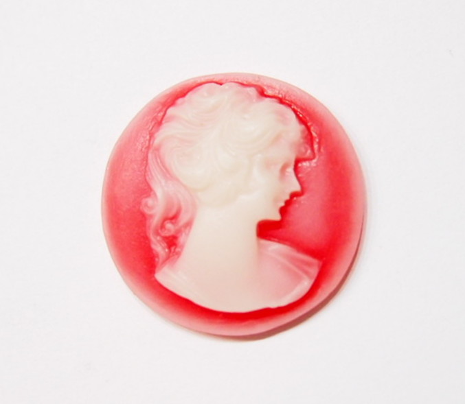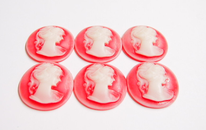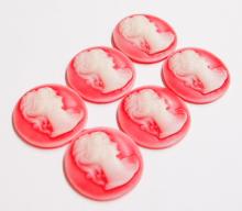 You are buying 6 of 30 mm Round White over Red Ponytail Lady Cameos. These are of a Victorian Ponytail Lady, She is white in color on a Reddish background. The details are very sharp and stand away from the background, giving it a 3-D effect. These measure 30 mm round. I have lots of Great Bails, Bracelets, Cameos, Chains, Connectors, Jump Rings, Lockets, Pendants, Pins, Rings & Settings so, just look at all my listings. I have these in 6 other Colors & in a group of 7 Colors as shown in the last 2 pictures item #360887723136, sold separately.